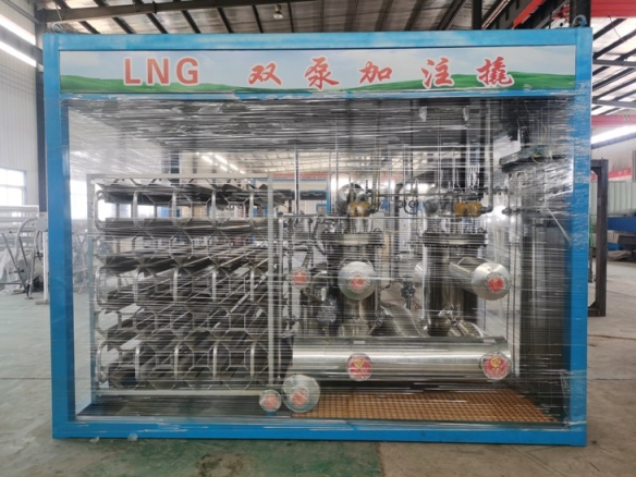 LNG加注撬是将传统“散装”的LNG各设备、液、气管线、阀门以及相应的电控仪表设备集中装在一个专用的框架内的LNG泵撬装置。
